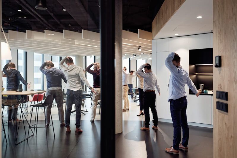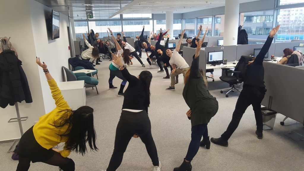 Regular 15 minutes movement of your employees in your openspace or in a meeting room at their work station - 1x - 5x a week in a work time.